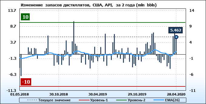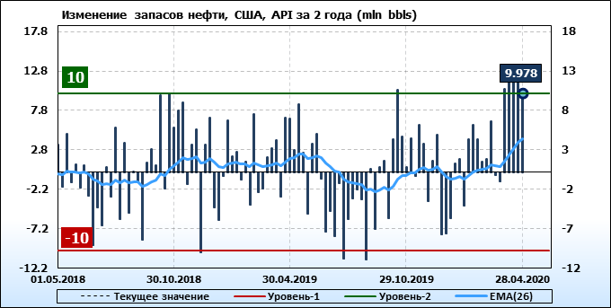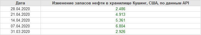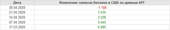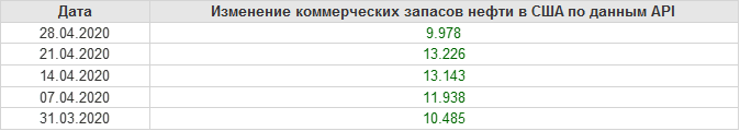API. Изменение запасов нефти в США на 28 апреля 2020