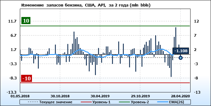 Запасы бензина в США по данным института API упали на -1.108 млн. баррелей.
