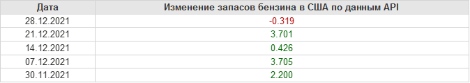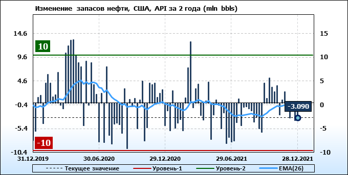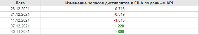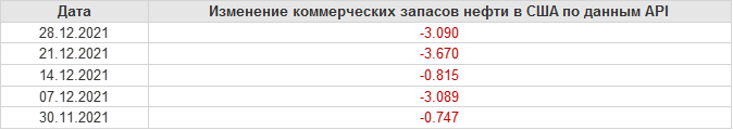 API. Изменение запасов нефти в США на 28 декабря 2021