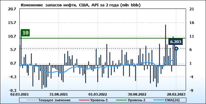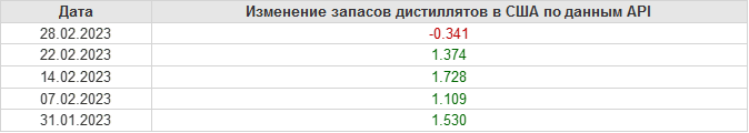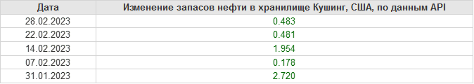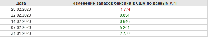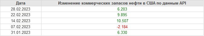 API. Изменение запасов нефти в США на 28 февраля 2023