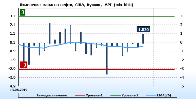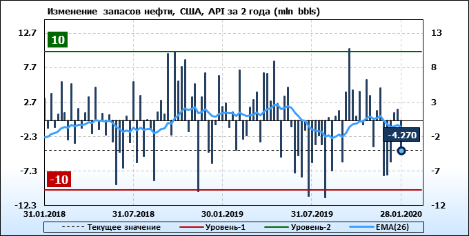 Коммерческие запасы нефти в США по данным института API упали на -4.27 млн. баррелей.