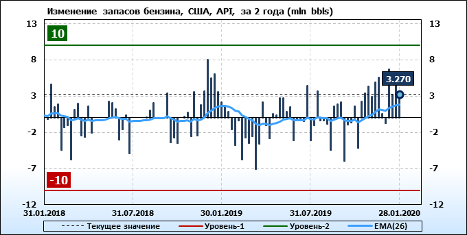Запасы бензина в США по данным института API выросли на 3.27 млн. баррелей.