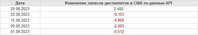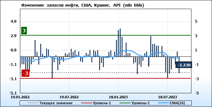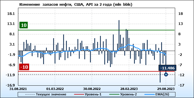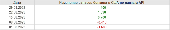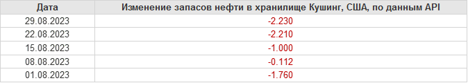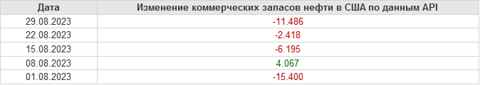API. Изменение запасов нефти в США на 29 августа 2023