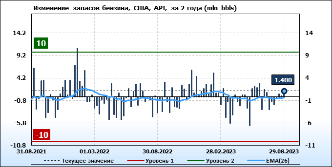Запасы бензина в США по данным института API выросли на 1.4 млн. баррелей.