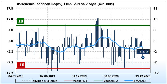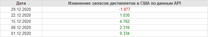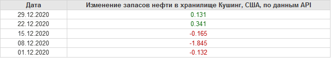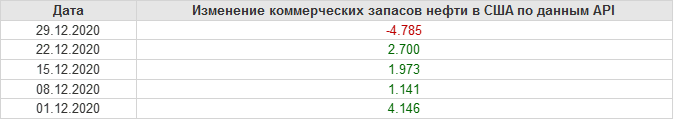 API. Изменение запасов нефти в США на 29 декабря 2020