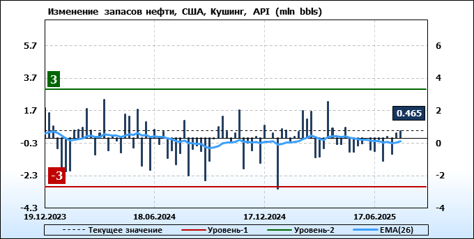 Запасы в хранилище Кушинг по данным института API выросли на 0.465 млн. баррелей.