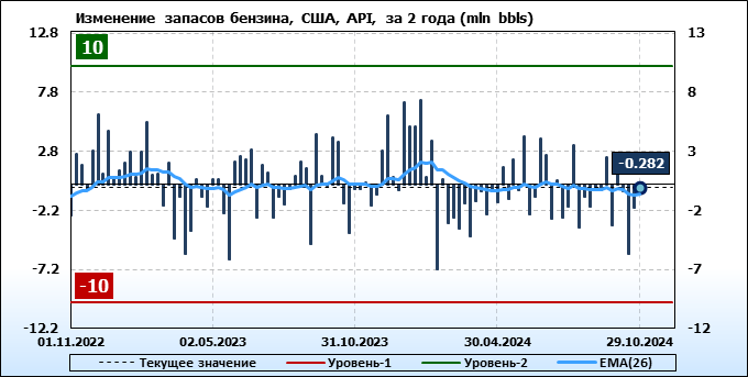 Запасы бензина в США по данным института API упали на 0.282 млн. баррелей.