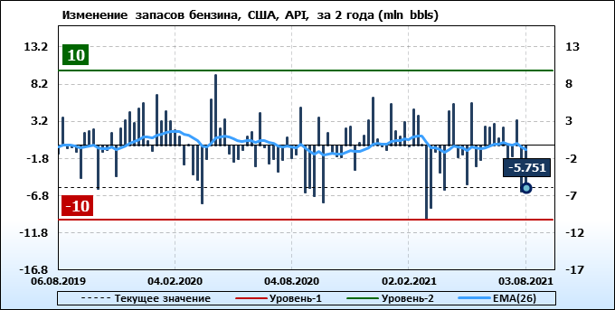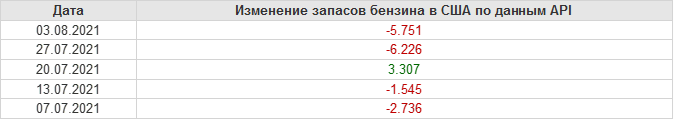 Запасы бензина в США по данным института API упали на 5.751 млн. баррелей.