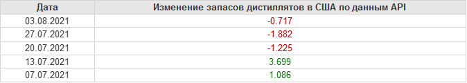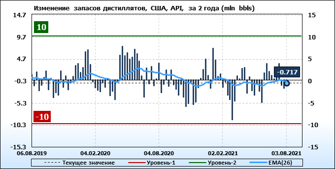 Запасы дистиллятов в США по данным института API упали на 0.717 млн. баррелей.