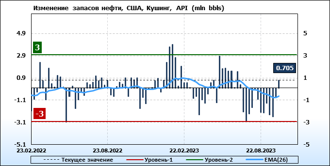 Запасы в хранилище Кушинг по данным института API выросли на 0.705 млн. баррелей.