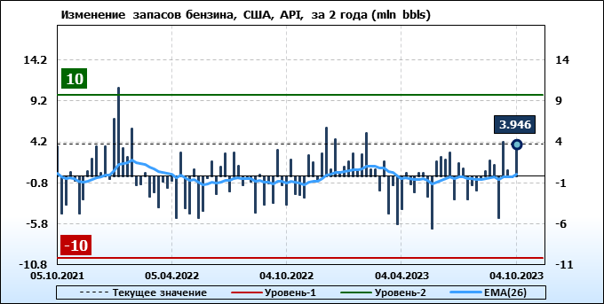 Запасы бензина в США по данным института API выросли на 3.946 млн. баррелей.
