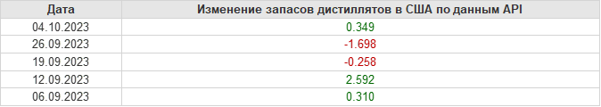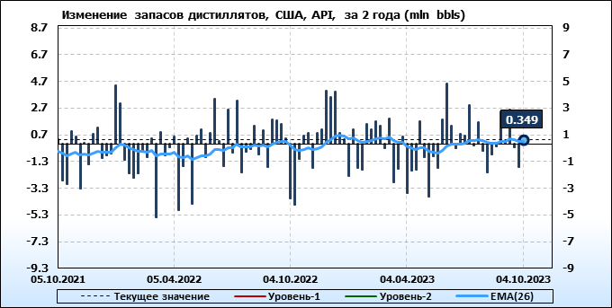 Запасы дистиллятов в США по данным института API выросли на 0.349 млн. баррелей.