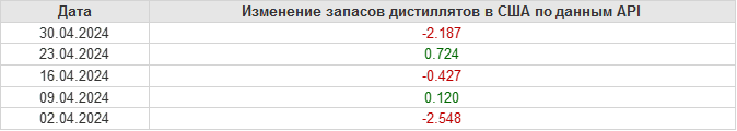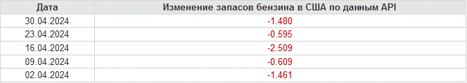 API. Изменение запасов нефти в США на 30 апреля 2024