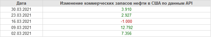 Коммерческие запасы нефти в США по данным института API выросли на 3.91 млн. баррелей.
