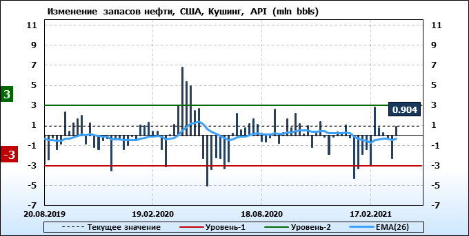 Запасы в хранилище Кушинг по данным института API выросли на 0.904 млн. баррелей.