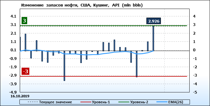 Запасы в хранилище Кушинг по данным института API выросли на 2.926 млн. баррелей.