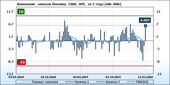 Запасы бензина в США по данным института API выросли на 6.085 млн. баррелей.