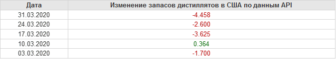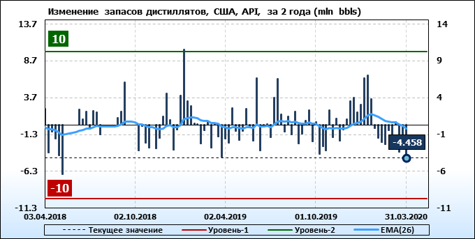 Запасы дистиллятов в США по данным института API упали на -4.458 млн. баррелей.