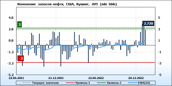 Запасы в хранилище Кушинг по данным института API выросли на 2.72 млн. баррелей.