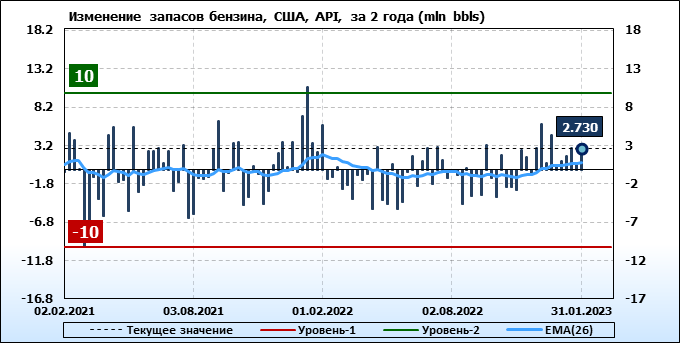 Запасы бензина в США по данным института API выросли на 2.73 млн. баррелей.