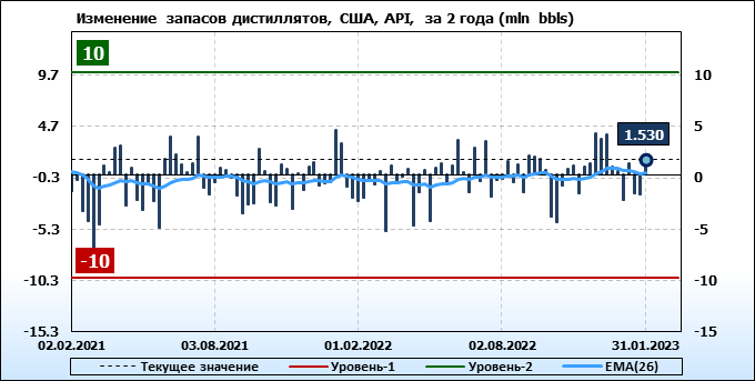 Запасы дистиллятов в США по данным института API выросли на 1.53 млн. баррелей.