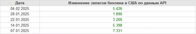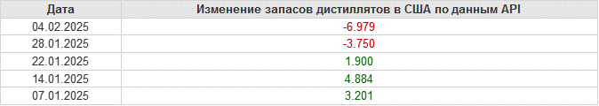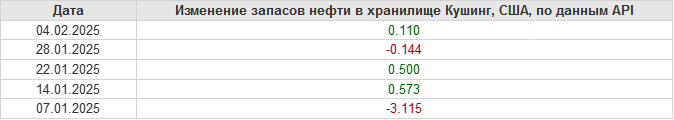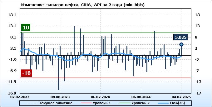 API. Изменение запасов нефти в США на 4 февраля 2025