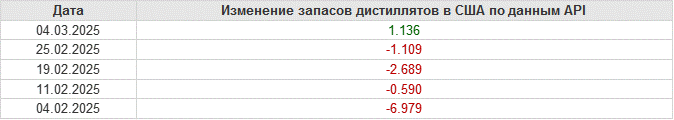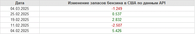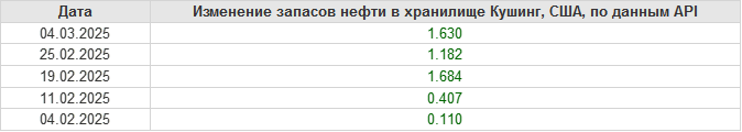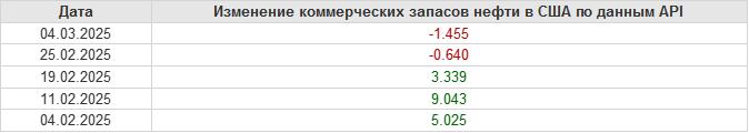 API. Изменение запасов нефти в США на 4 марта 2025