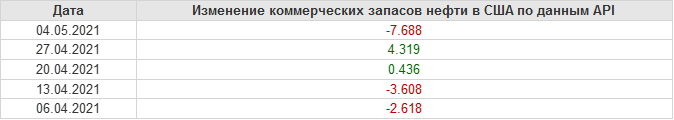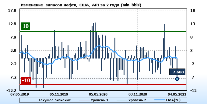 Коммерческие запасы нефти в США по данным института API упали на 7.688 млн. баррелей.