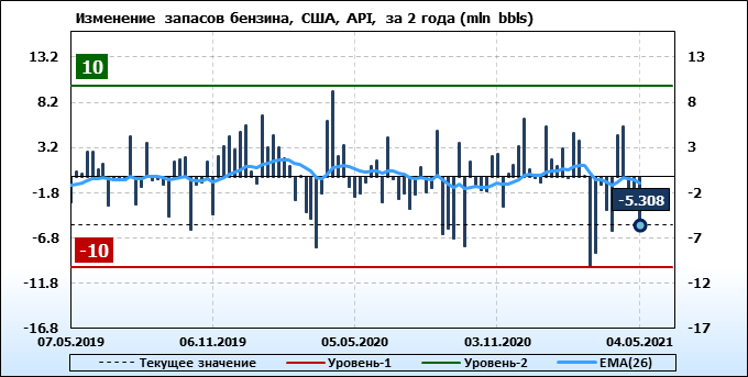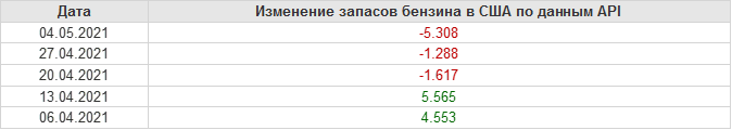 Запасы бензина в США по данным института API упали на 5.308 млн. баррелей.