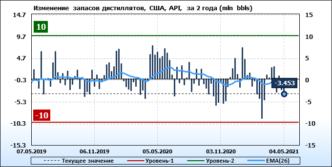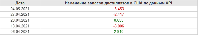 Запасы дистиллятов в США по данным института API упали на 3.453 млн. баррелей.