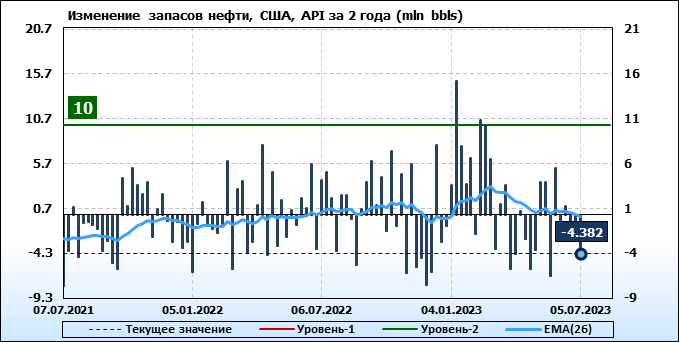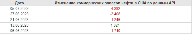 Коммерческие запасы нефти в США по данным института API упали на 4.382 млн. баррелей.