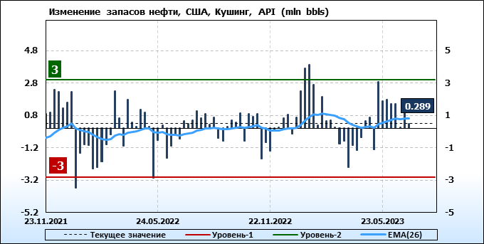 Запасы в хранилище Кушинг по данным института API выросли на 0.289 млн. баррелей.