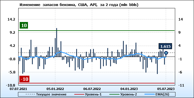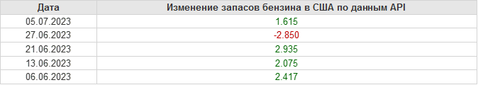 Запасы бензина в США по данным института API выросли на 1.615 млн. баррелей.