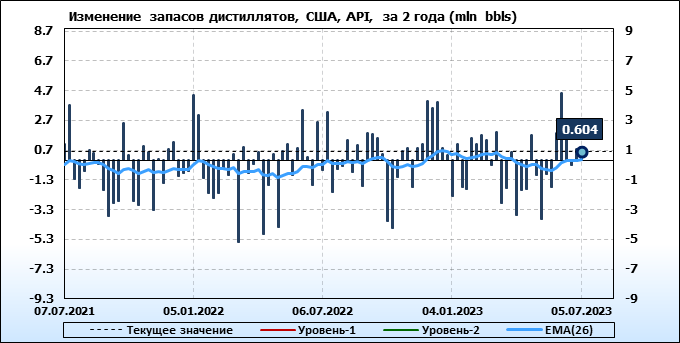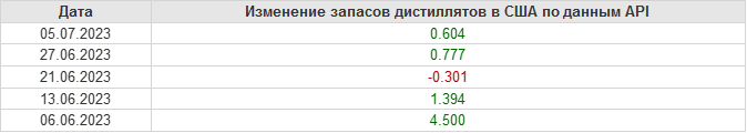 Запасы дистиллятов в США по данным института API выросли на 0.604 млн. баррелей.