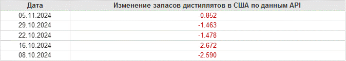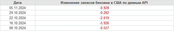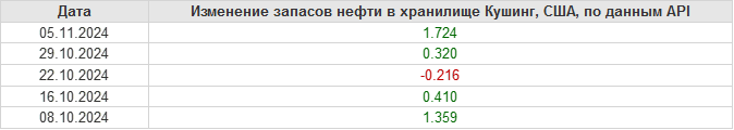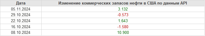 API. Изменение запасов нефти в США на 5 ноября 2024