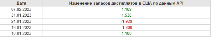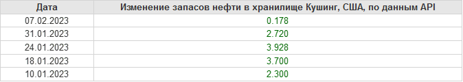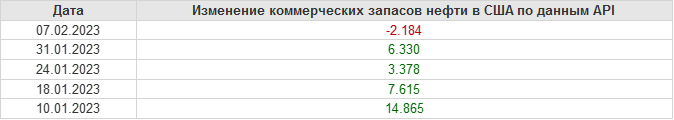 API. Изменение запасов нефти в США на 7 февраля 2023