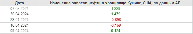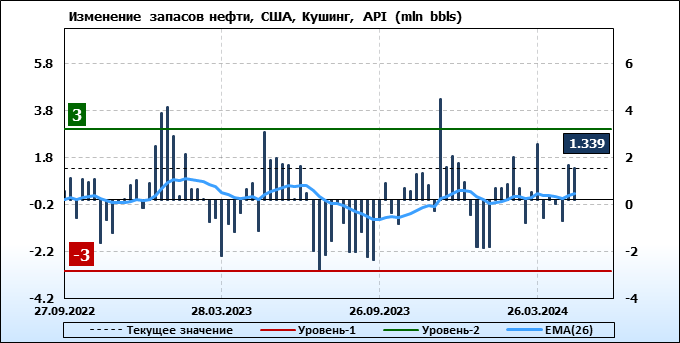 Запасы в хранилище Кушинг по данным института API выросли на 1.339 млн. баррелей.