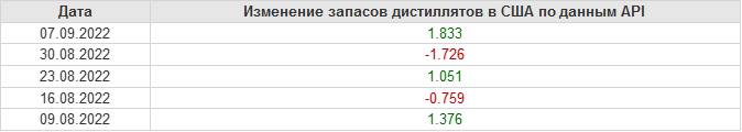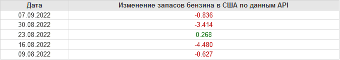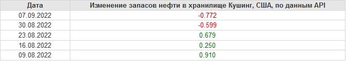 API. Изменение запасов нефти в США на 7 сентября 2022