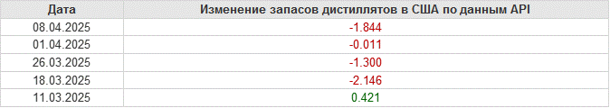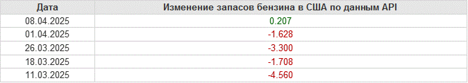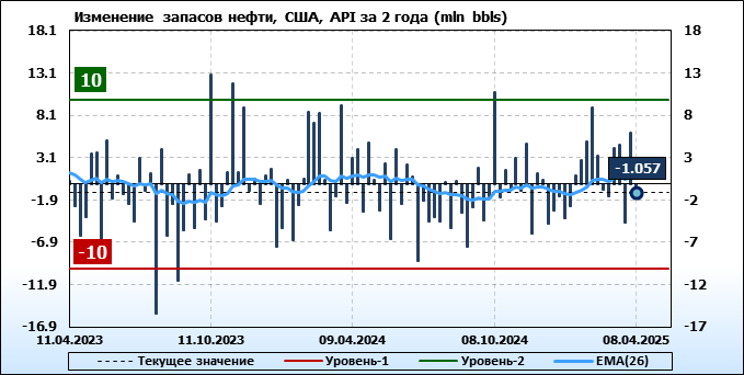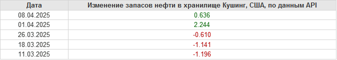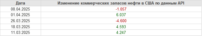 API. Изменение запасов нефти в США на 8 апреля 2025