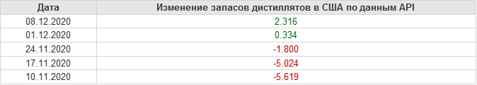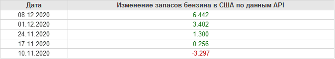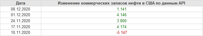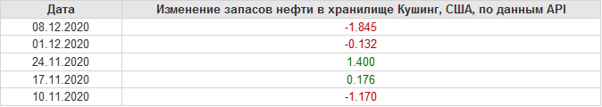 API. Изменение запасов нефти в США на 8 декабря 2020