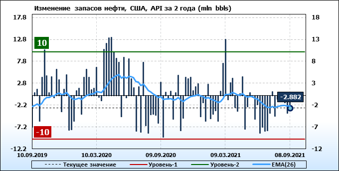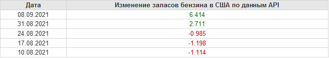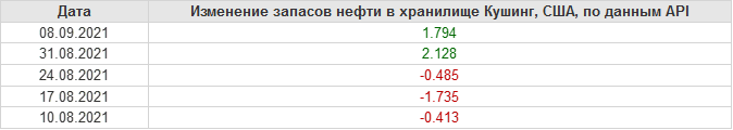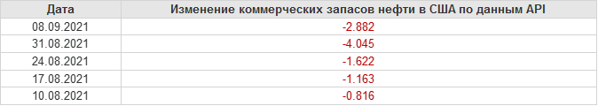 API. Изменение запасов нефти в США на 8 сентября 2021