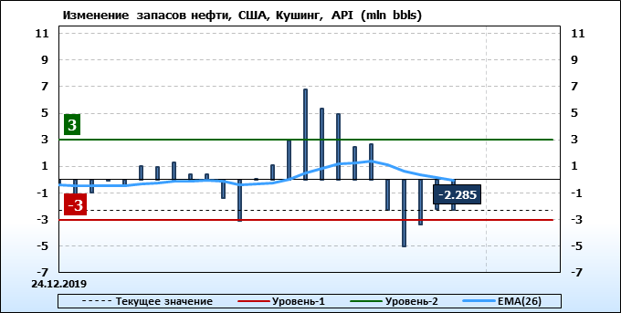 Запасы в хранилище Кушинг по данным института API упали на -2.285 млн. баррелей.