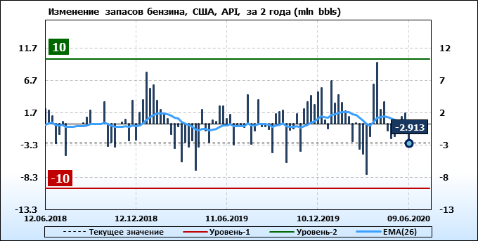 Запасы бензина в США по данным института API упали на -2.913 млн. баррелей.