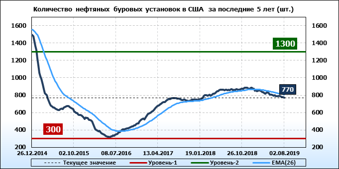 Baker Hughes. Количество буровых установок в США. Данные на 02.08.2019