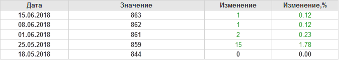 По сообщению Baker Hughes количество нефтяных буровых установок в США на 15.06.18 составило 863 штуки. За неделю количество буровых установок выросло на 1 единицу.