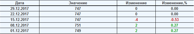 По сообщению Baker Hughes количество нефтяных буровых установок в США на 29.12.2017 составило 747 штук. За неделю количество буровых установок осталось неизменным и составляет на 0 единиц. На прошлой неделе количество установок, которые прекратили работу составило 3 единицы. Количество установок, которые ввели в эксплуатацию составило 3 единицы.