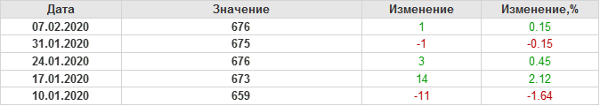 По сообщению Baker Hughes количество нефтяных буровых установок в США на 07.02.20 составило 676 штук. За неделю количество буровых установок выросло на 1 единицу. На прошлой неделе количество установок, которые прекратили работу составило 3 единицы. Количество установок, которые ввели в эксплуатацию составило 4 единицы. Как видим, рост числа установок есть, но он незначительный.