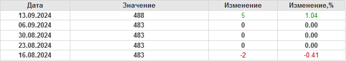 По сообщению Baker Hughes количество нефтяных буровых установок в США на 13.09.24 составило 488 штук. За неделю количество буровых установок выросло на 5 единиц.