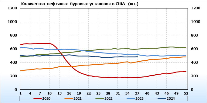 Baker Hughes. Количество буровых установок в США на 13 сентября 2024