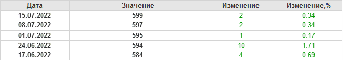 По сообщению Baker Hughes количество нефтяных буровых установок в США на 15.07.22 составило 599 штук. За неделю количество буровых установок выросло на 2 единицы. На прошлой неделе количество установок, которые прекратили работу составило 1 единицу. Количество установок, которые ввели в эксплуатацию составило 3 единицы. Как видим, рост числа установок есть, но он незначительный.